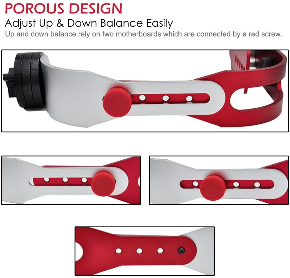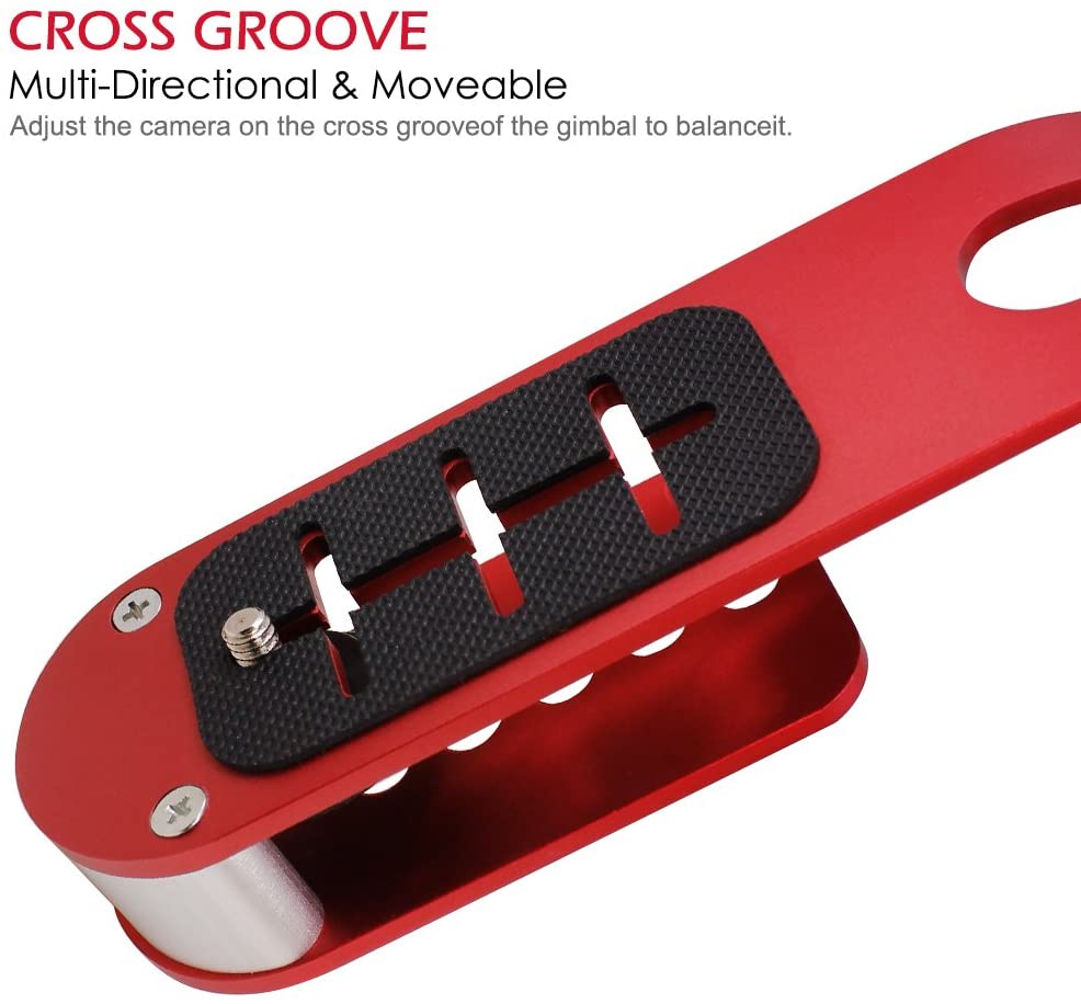 Balance: Red nut can be adjusted up and down, weight can be increased or decreased, the handheld part used to fine-tune, the three parts work together to adjust camera balance.   It also features a rubberized, non-slip mounting surface so your camera attaches securely; and a rubber-covered hand grip for comfortable shooting. It is the most affordable full-featured stabilizer on the market.   Instructions:1. Attach camera 2. Adjust counterweight until center of gravity is reached 3. Tighten counterweight to hold in place