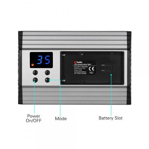 The Tolifo PT-15 Kit A is a great setup for the photographer or videographer who wants to keep their kit small. The brightness can be adjusted by sturdy buttons on the back panel, as well as the colour temperature, making sure you get the perfect white-balance every time. The light operates on external DC power supply and can also accept Sony NP batteries if desired.