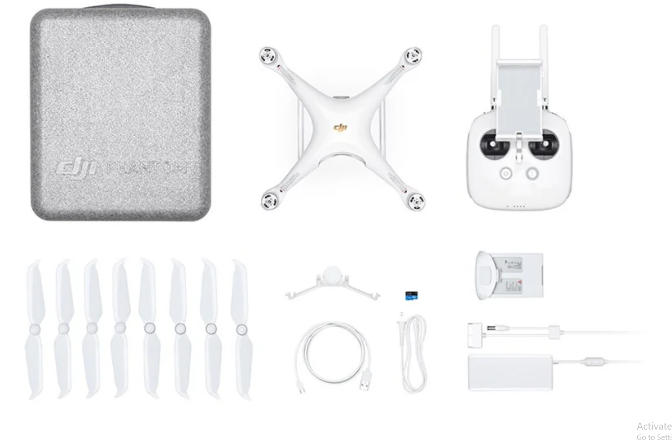 - What you get: DJI Phantom 4 Pro V2.0, Remote Controller, Intelligent Flight, Battery, Charger, Power Cable, 4x Propellers (pair), Gimbal Clamp, microSD Card (32GB), Micro USB Cable, Carrying Case